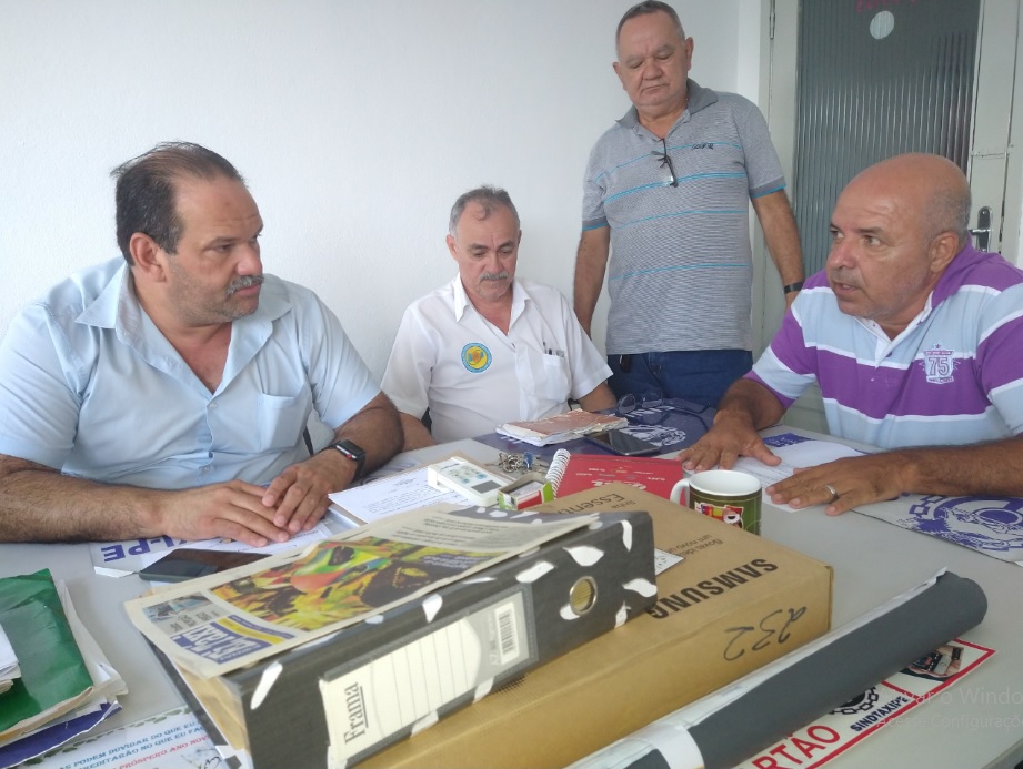 Da esquerda à direita, Fortunato e taxistas dialogam na sede do SindtáxiPE – Foto: Daniel Júnior